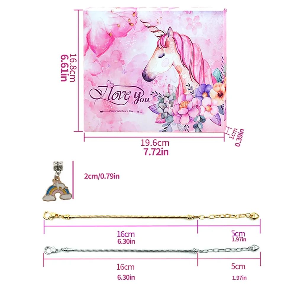 5 farbige Perlen, 5 große Lochperlen aus Legierung, 12 Anhänger, 2 Armbänder mit Box