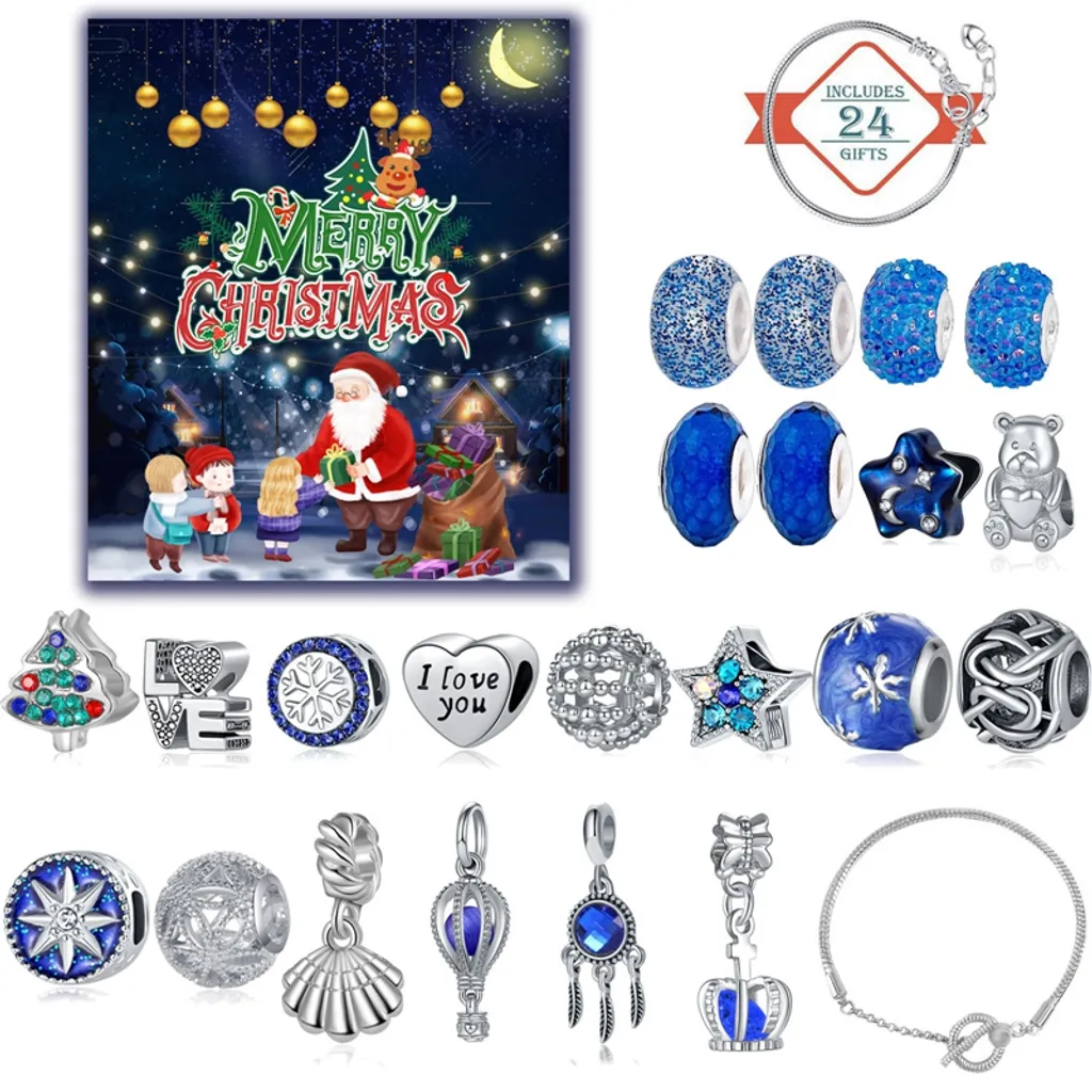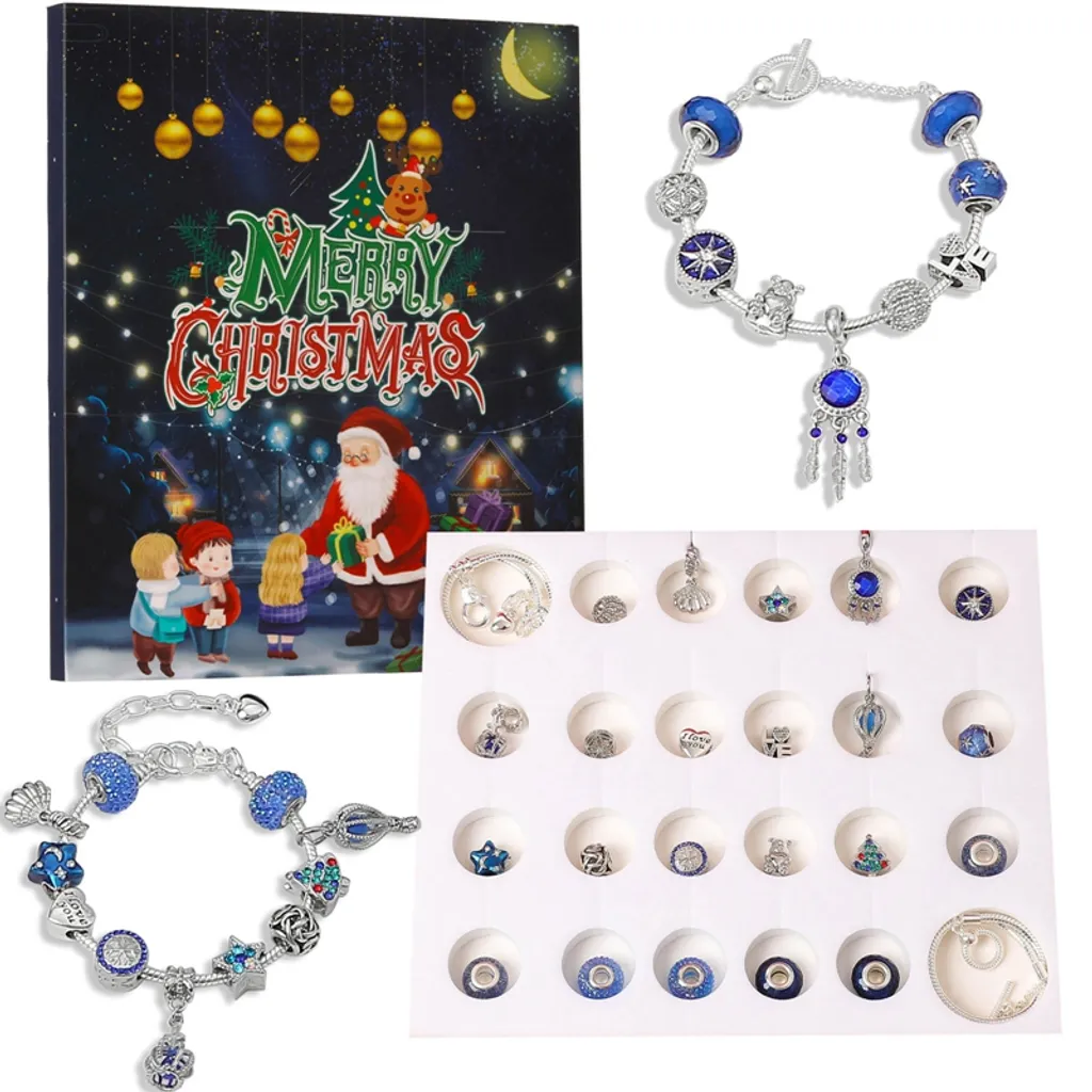 Adventskalender 2022, Kinderschmuck Mit 22 Charms Und 2 Armbändern Weihnachtskalender Für Jungen, Mädchen, Kinder, Weihnachten Advent Calendar Weihnachtsgeschenk Blau