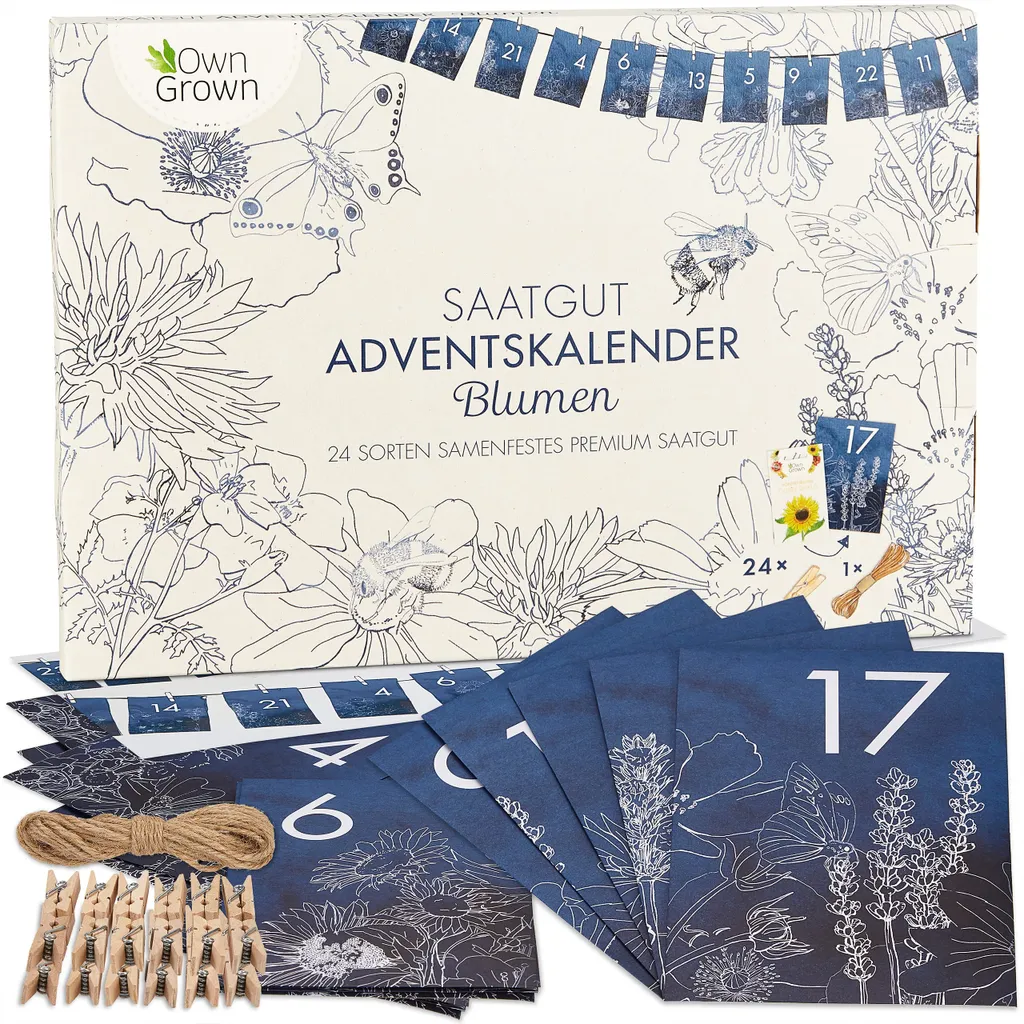 Der Premium Blumen Saatgut Kalender Begleitet Dich Durch Den Advent Und Stimmt Auf Eine Herrlich Besinnliche Zeit Ein. Pflanzensamen Sind Tolle, Nachhaltige Geschenke Für Den Garten Und Für Gärtner! Er Enthält 24 Saatgut Tütchen Verpackt In Schöne Umschläge Mit Erlesenen, Malerischen, Insektenfreundlichen Bienen Blumen Samen. Wundervoll Als Adventskalender Frauen, Für Männer & Gartenliebhaber! Diy Adventskalender Saatgut Set: Neben Pflanzen Samen Gehören Zum Weihnachtskalender 2021 Eine Natürliche Schnur Aus Jute-Fasern Und 24 Wäscheklammern Aus Holz Zum Dekorativen Befestigen Der Tütchen Einfache Anzucht Ob Auf Fensterbrett, Balkon Oder Im Garten Beet. Auf Jeder Pflanzensamen Packung Befindet Sich Eine Ausführliche Anleitung Zu Aussaat, Pflege Sowie Den Besonderheiten Der Sorten Garten Geschenke Mit Liebe Gemacht: Own Grown Saat Enthält Alte Sorten Und Neue. Unsere Pflanzen Samen Sind Samenfestes Saatgut, Per Hand Verpackt. Schöner Bastel Adventskalender Für Die Familie