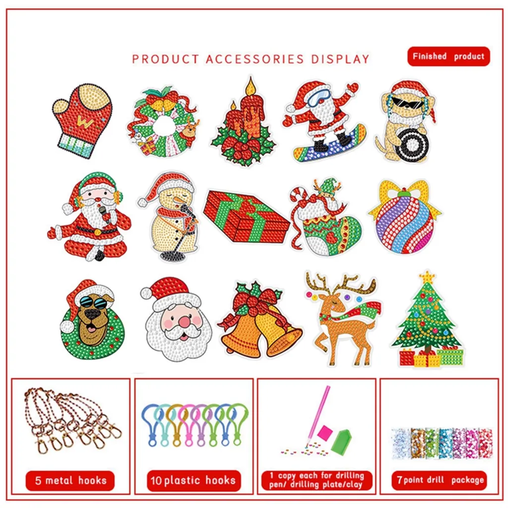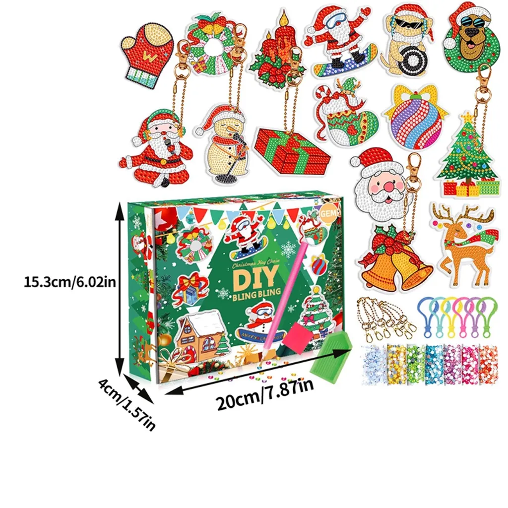 [Elegantes DIY-Kunsthandwerk]: Neue Diamantbilder kombiniert mit Schlüsselanhängern, die beliebteste und modischste DIY-Dekoration. Lebendige Farben und niedliche Weihnachts-Cartoons, die im Licht leuchten. Perfekte DIY-Malerei, machen Sie Ihre Schlüssel und Ihr Leben voller Vitalität.