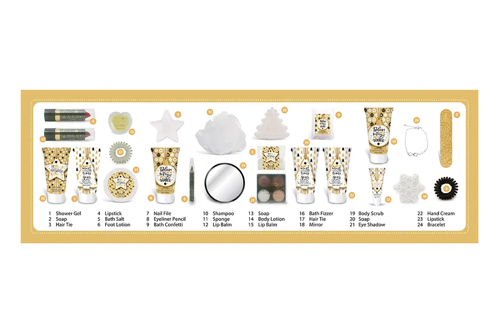 4 Seiten zum Öffnen mit 24 tollen Beautyartikeln.