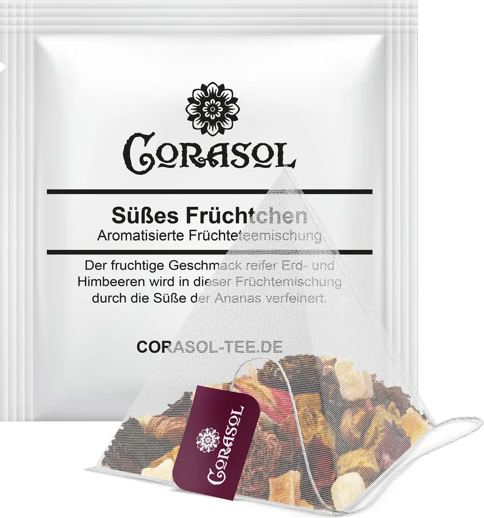 Die vielfältigen Tee-Mischungen im Pyramidenbeutel sind im Kalender in einzeln beschrifteten Aroma-Schutzbeuteln luftdicht verpackt. Hierauf finden sich alle Informationen über Geschmacksrichtung, Ziehzeit oder Inhaltsstoffe.