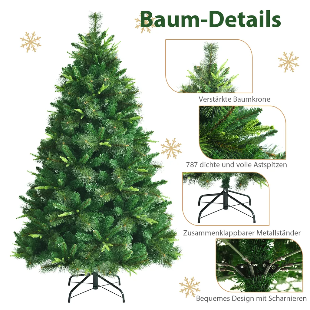 Der Weihnachtsbaum hat 787 PE-, PVC- und Tannenzweige. Durch diese Kombination hat er ein üppiges und dichtes Aussehen. Sie haben zwei verschiedene Grüntöne, wodurch er besonders echt aussieht.