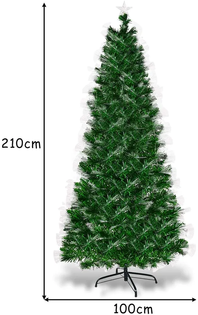 Unser brandneuer 210cm beleuchteter Weihnachtsbaum ist die ideale Weihnachtsdekoration. Der Baum ist mit energiesparenden, LED-Leuchten und mehrfarbiger Faseroptik ausgestattet. Die LED-Leuchten haben eine weiße und warmweiße Farbe mit 8 Lichtmodi. Unsere Bäume sind von hervorragender Qualität. Die Nadeln aus farb- und quetschfestem PVC wirken sehr frisch. Die Spitzen sind so geformt, dass das naturgetreue Aussehen der Bäume unterstrichen wird. Darüber hinaus verleihen die versetzten Äste dem Baum ein dichtes Aussehen. Die Metallfüße halten den Baum in einer aufrechten Position. Verleihen Sie Ihrem Zuhause mit diesem Weihnachtsbaum Festlichkeit!