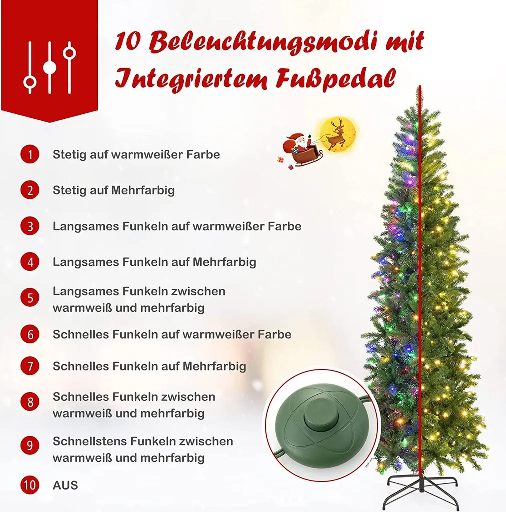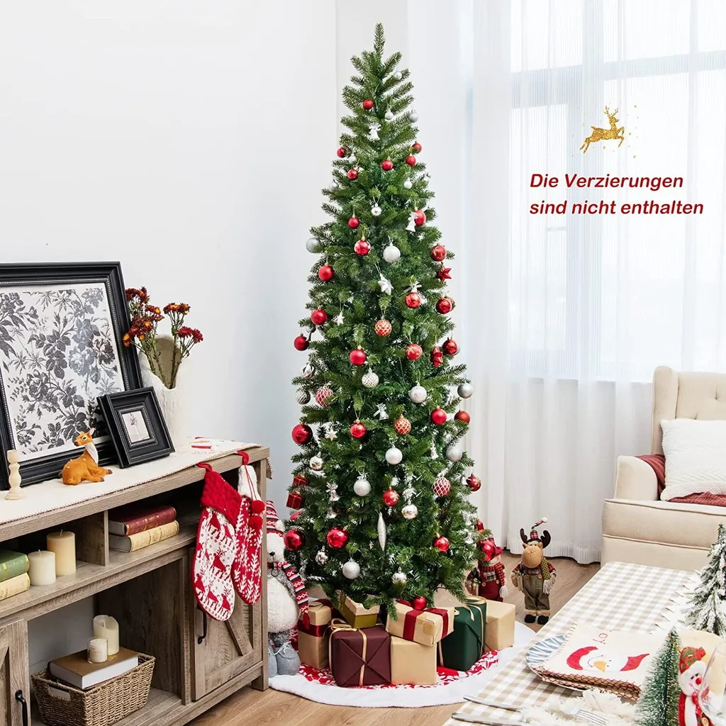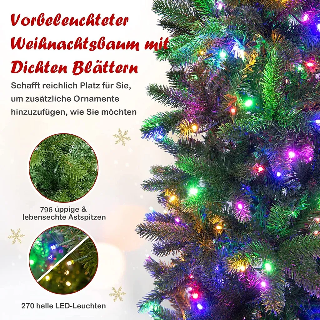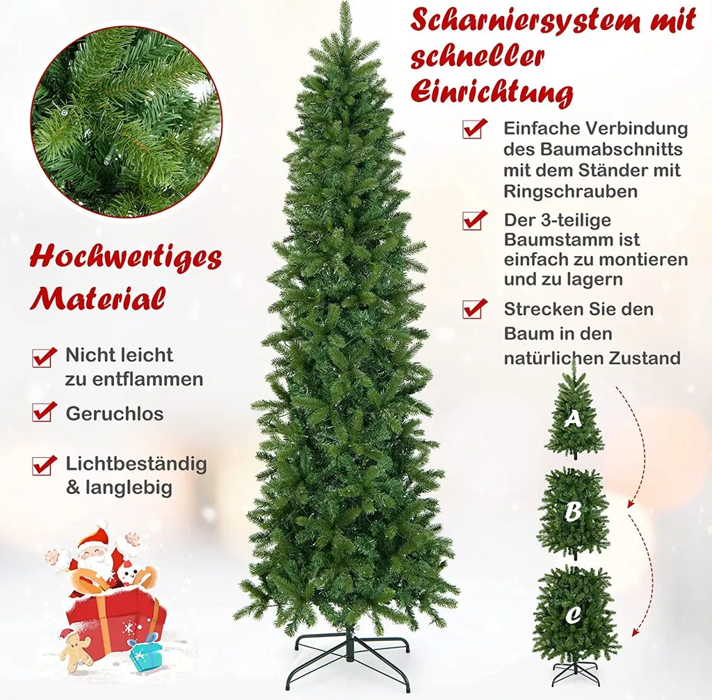 Dank seines hohen und schlanken Designs kann der vorbeleuchtete Weihnachtsbaum Ihren Raum schmücken, während er nur eine kleine Fläche einnimmt, was ihn perfekt für Büros, Einkaufszentren, Restaurants, Schulen und Häuser macht, um Ihre Familie und Freunde durch frohe und besinnliche Weihnachtstage zu begleiten.