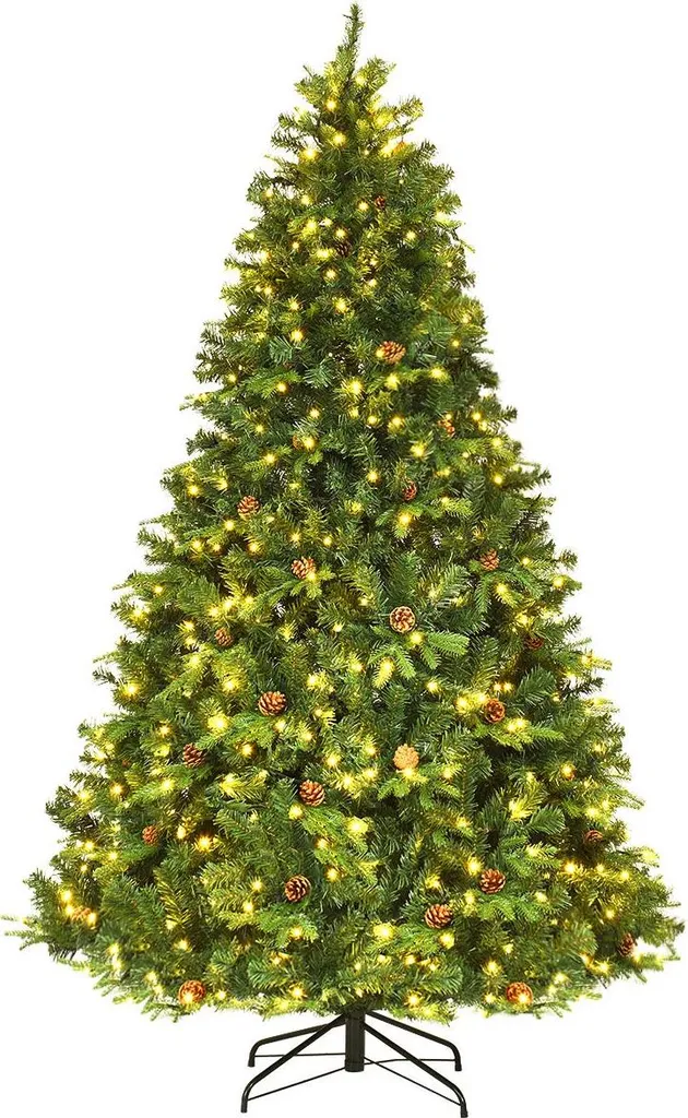 225cm mit 1125 Spitzen, 540 Stück LED, 71 Kiefernzapfen, Durchmesser des Fußes 55cm