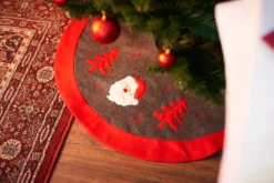 Weihnachtsbaum Decke Teppich, Ø 91cm, Christbaumdecke Tannenbaumdecke, Grau Rot