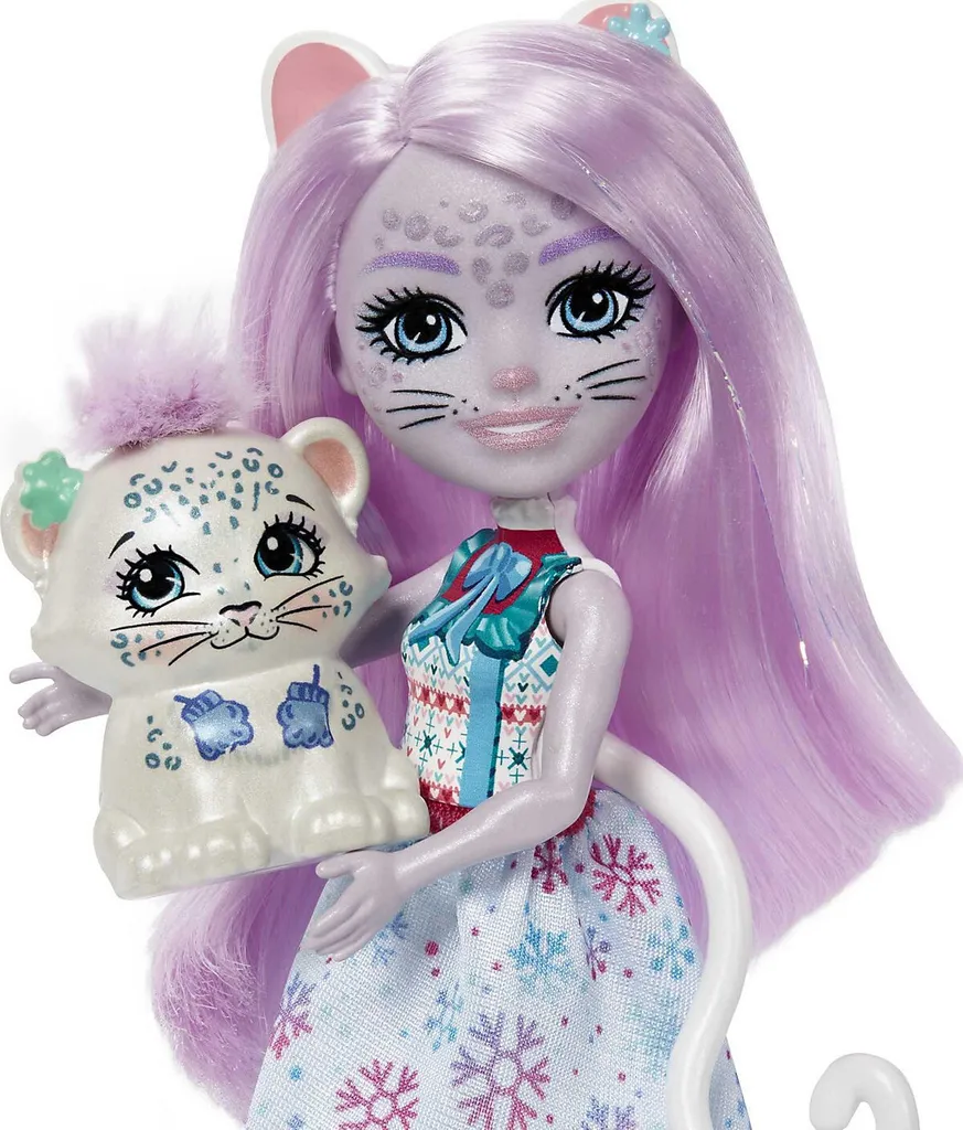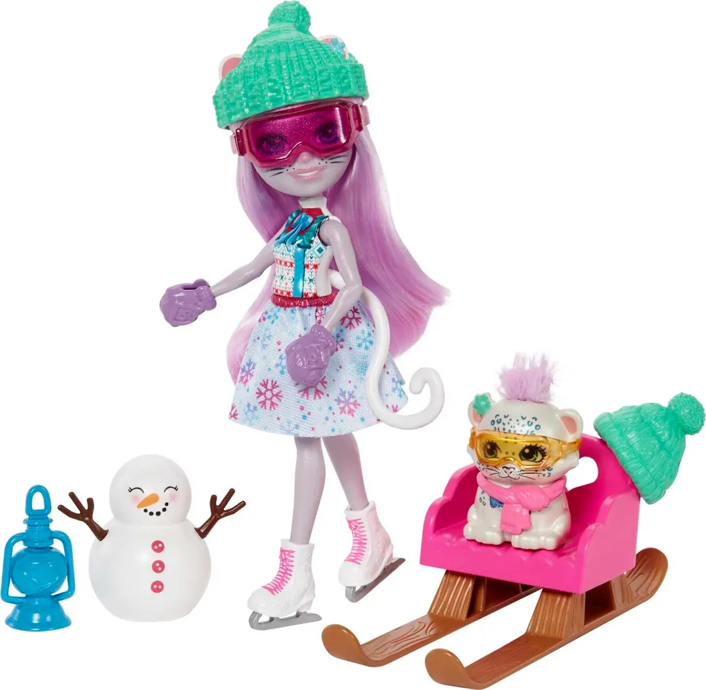 Kinder erhalten jeden Tag ein weiteres Zubehörteil zum Spielen für Schneeleoparden-Mädchen Sybill und Flake.