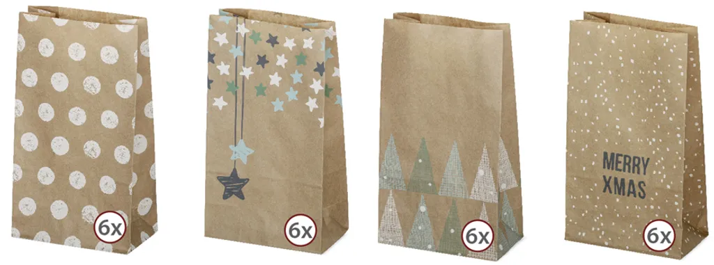 - 24 Kraftpapiertüten (6 x 4 Motive)