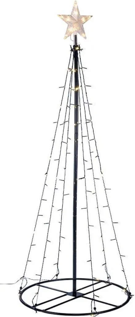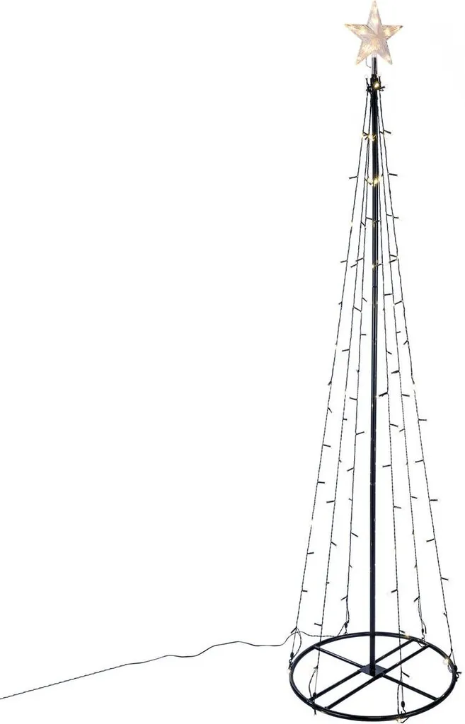 Dieser LED Baum kann sowohl im Innenbereich, wie auch im Außenbereich für strahlenden Glanz und Erleuchtung sorgen. Seine einfache Form basiert auf einem Metallgestell, dass in Verbindung mit den LED Lichterketten ein ganz besonders schönes und dekoratives Gesamtbild ergibt. Hier lassen sich Hauseingänge, Vorgärten, Terrassen, Balkone, Foyers, Geschäfte, Büro- und Praxisräume stilsicher und unaufdringlich gestalten. Der leuchtende Stern auf der Spitze ist ein weiterer und sehr ansehnlicher Blickfang. Lassen Sie sich von dem besonderen Strahlen verzaubern.