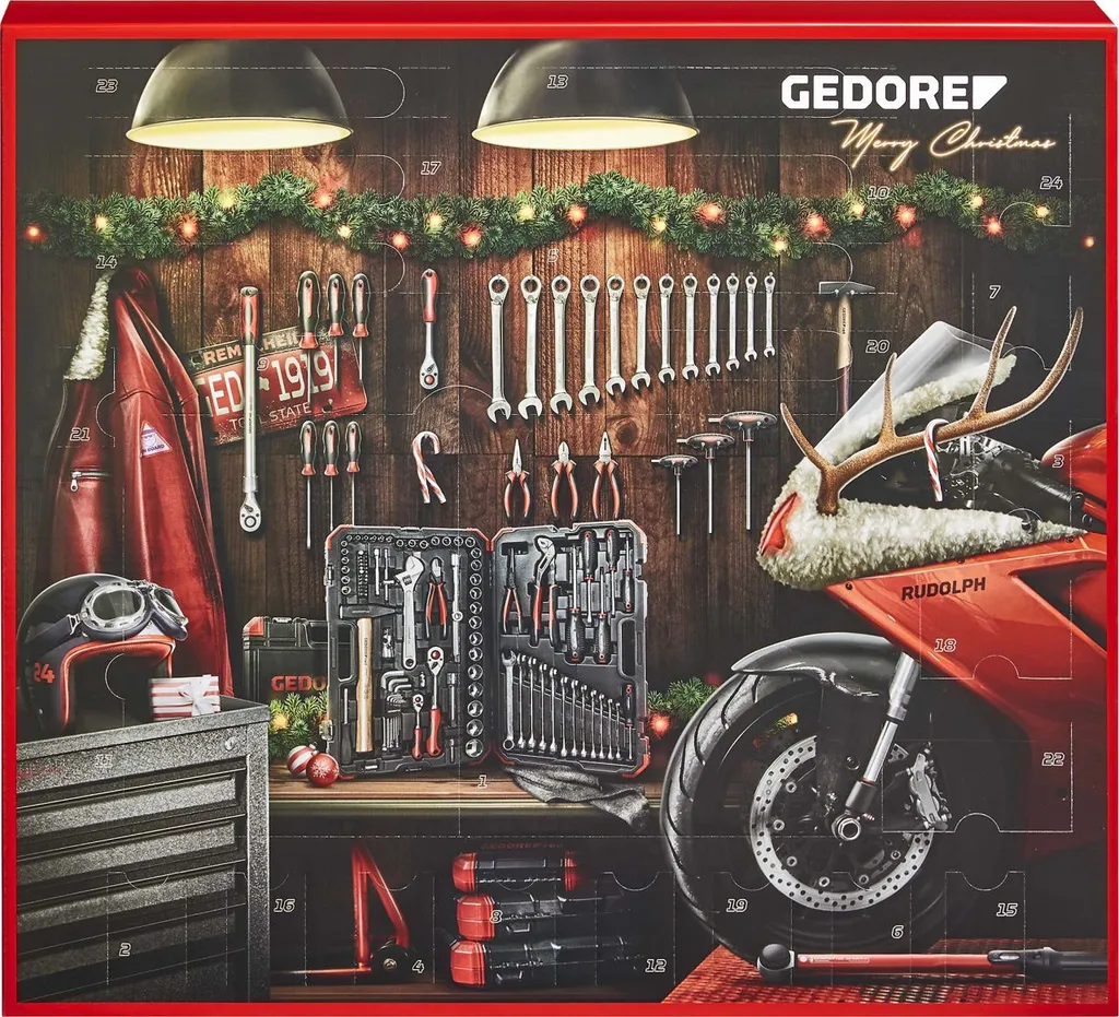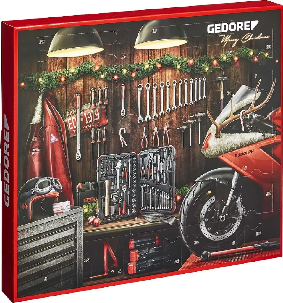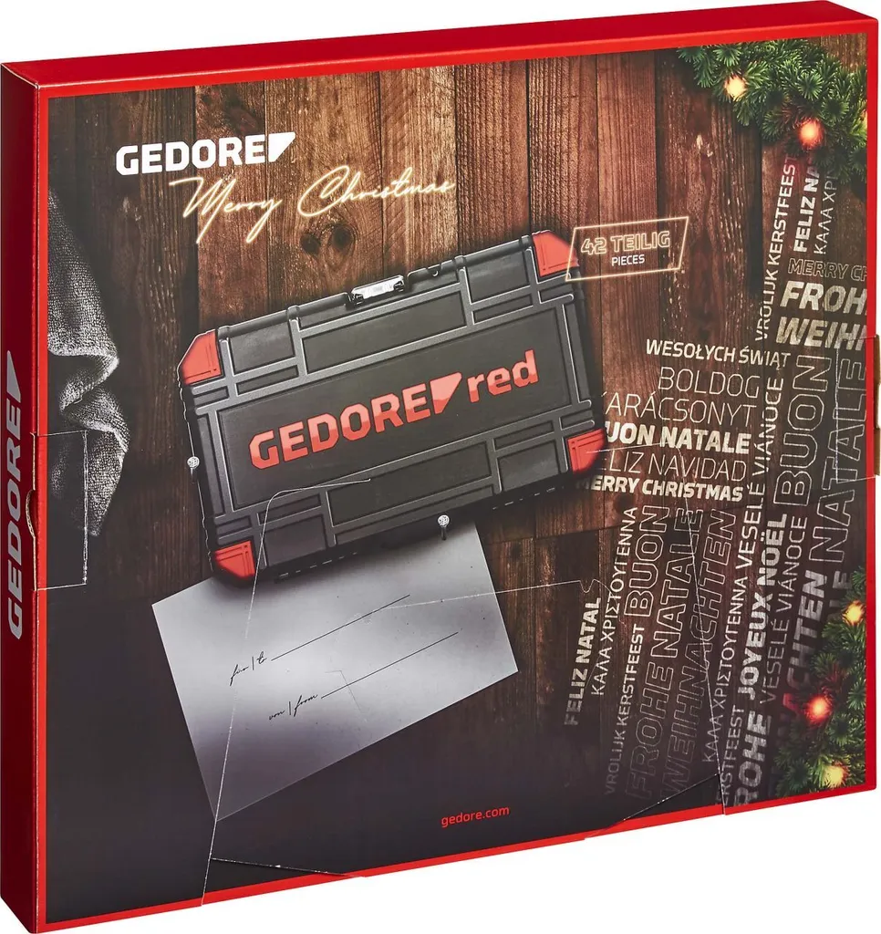GEDORE red Adventskalender – Für alle Werkzeugenthusiasten im weihnachtlichen Design mit 42 Teilen – das perfekte Geschenk für jeden Werkzeugfan mit täglichen Überraschungen in der Vorweihnachtszeit. 42-teiliger Werkzeugsatz: Die ausgewählten Werkzeuge bieten durch eine Zusammenstellung von gängigen Profilen und Größen eine sinnvolle Erweiterung zum eigenen Werkzeugbestand. Qualitätswerkzeuge: Verlässlicher Begleiter für Hand- und Heimwerker bei Werkstattarbeiten und ergänzende Unterstützung alltäglicher Schraubanwendungen in Garage oder Haushalt. Robust: Der stabile GEDORE red Kunststoffkoffer sorgt durch Metallverschlüsse für eine zuverlässige Sicherung der Werkzeuge. Limitierte Sonderedition: Freude schenken mit diesem optischen Blickfang im weihnachtlichen Motiv – Das passende Geschenk für Familie, Freunde, Kollegen, Geschäftspartner oder die ganz persönliche Vorfreude!42 teiliger WerkzeugsatzQualitätswerkzeugelimitierte SondereditionPraktische Aufbewahrung im handlichen