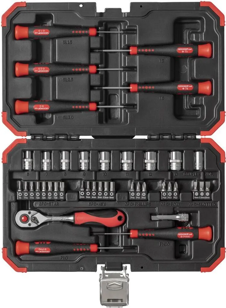– mit Steckschlüssel-Satz 1/4″ im handlichen GEDORE red Transportkoffer