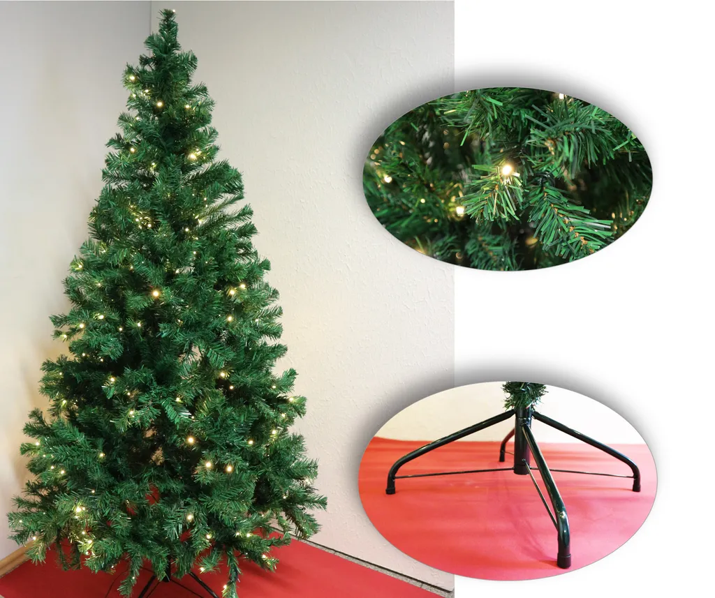 Der Weihnachtsbaum ist ca. 1,80 m hoch bei einem Durchmesser von ca. 90 cm und passt somit in fast jede Wohnung. Die Lichterkette mit über 200 LED-Dioden ist bereits am Baum befestigt und muss nur noch eingeschaltet werden. Ihre verschiedenen Programme sorgen für eine stimmungsvolle Beleuchtung, die Ihre persönliche Dekoration wunderbar in Szene setzt. Die LEDs leuchten hell, gedimmt oder im Wechsel.