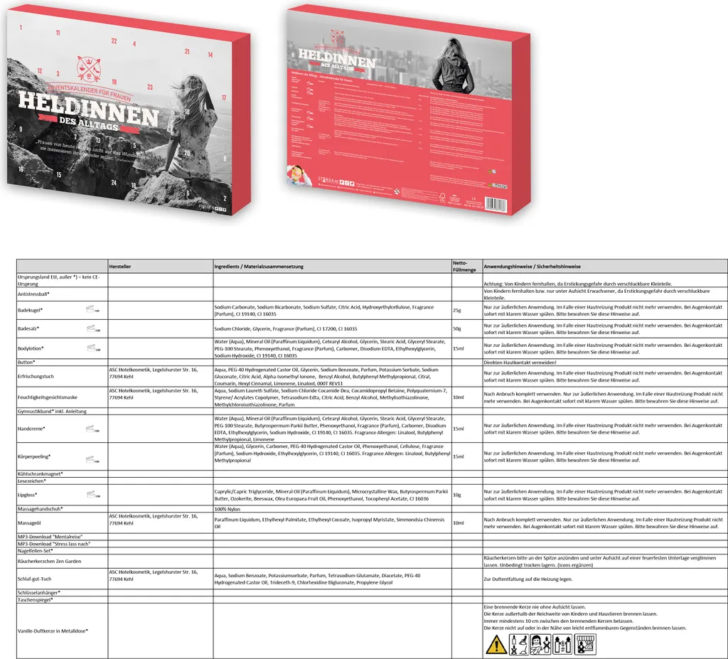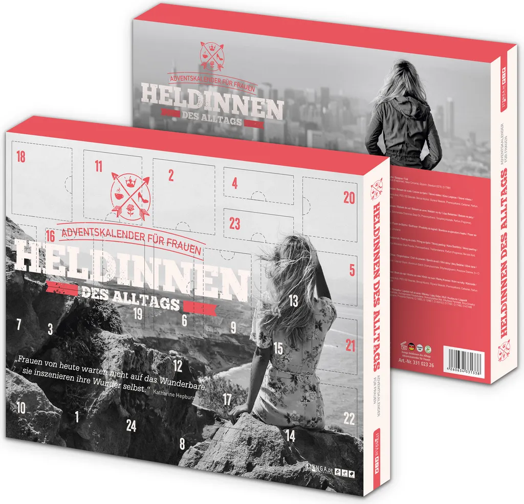 Ebenfalls erhältlich sind die Adventskalender Beste Mama, Beste Freundin, Helden des Alltags & Heldinnen des Alltags.
