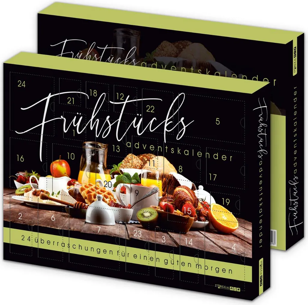 gefüllt mit Frühstücks- und Genussartikeln wie Honig, Marmelade, Nutella, Marmorkuchen, Porridge, Brot, Tee und Kaffee.