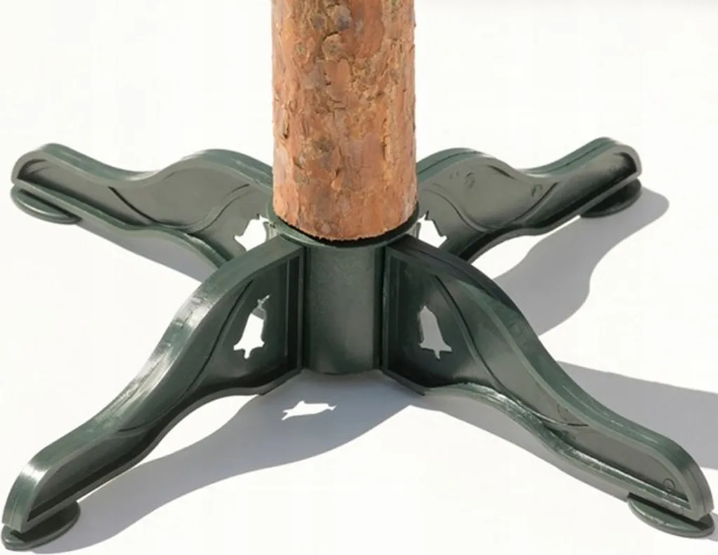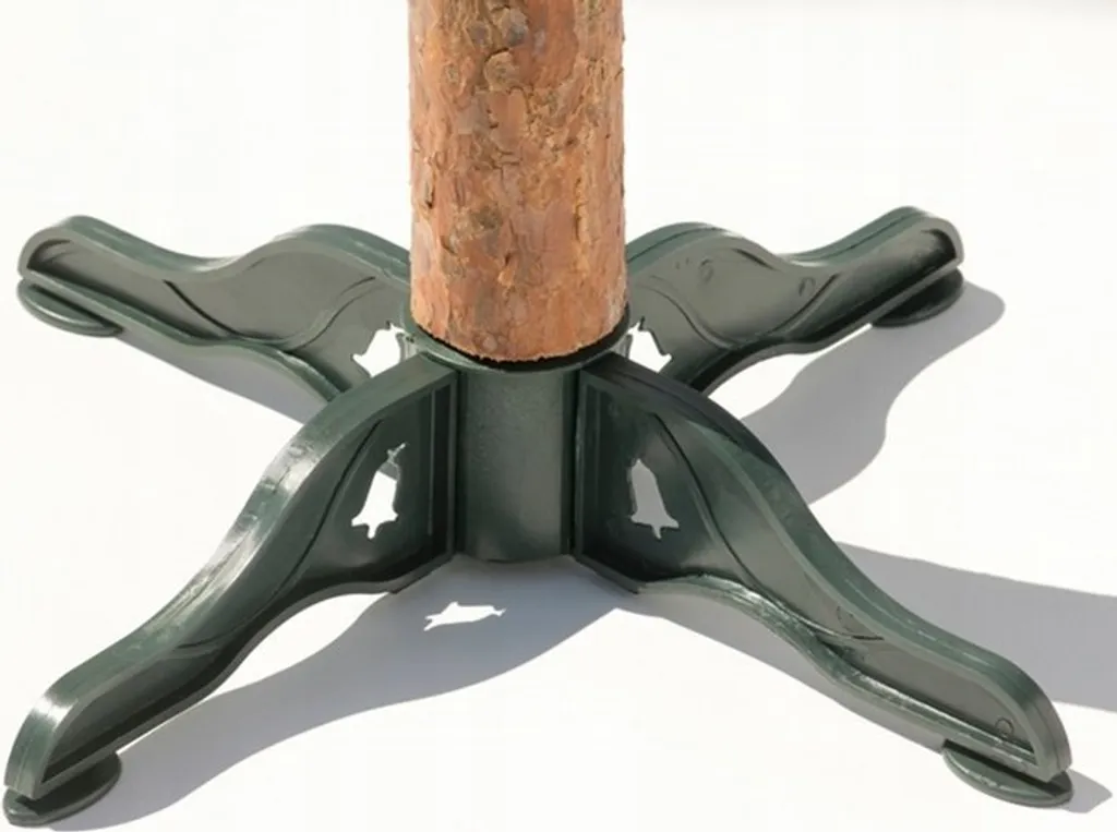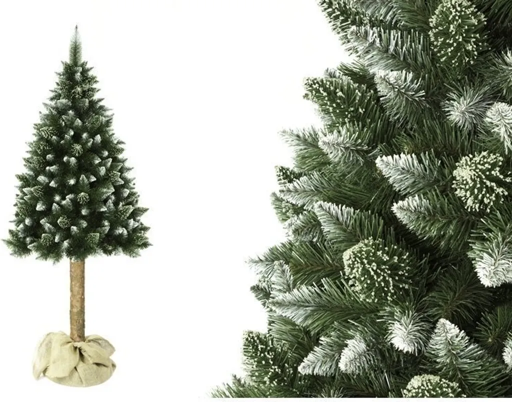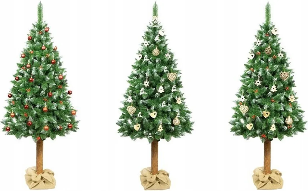Bestehend aus 3 Teilen: einem Weihnachtsbaum, einem Kiefernstamm und einer stabilen Basis, die mit dekorativer Jute umwickelt ist.