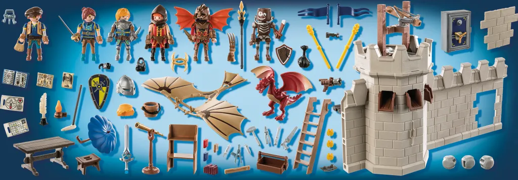 – Burgerweiterung: Burgturm und Burgmauer sind verbaubar mit der Großen Burg von Novelmore (Art.Nr. 70220 – separat erhältlich).