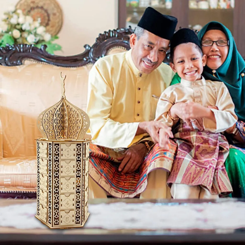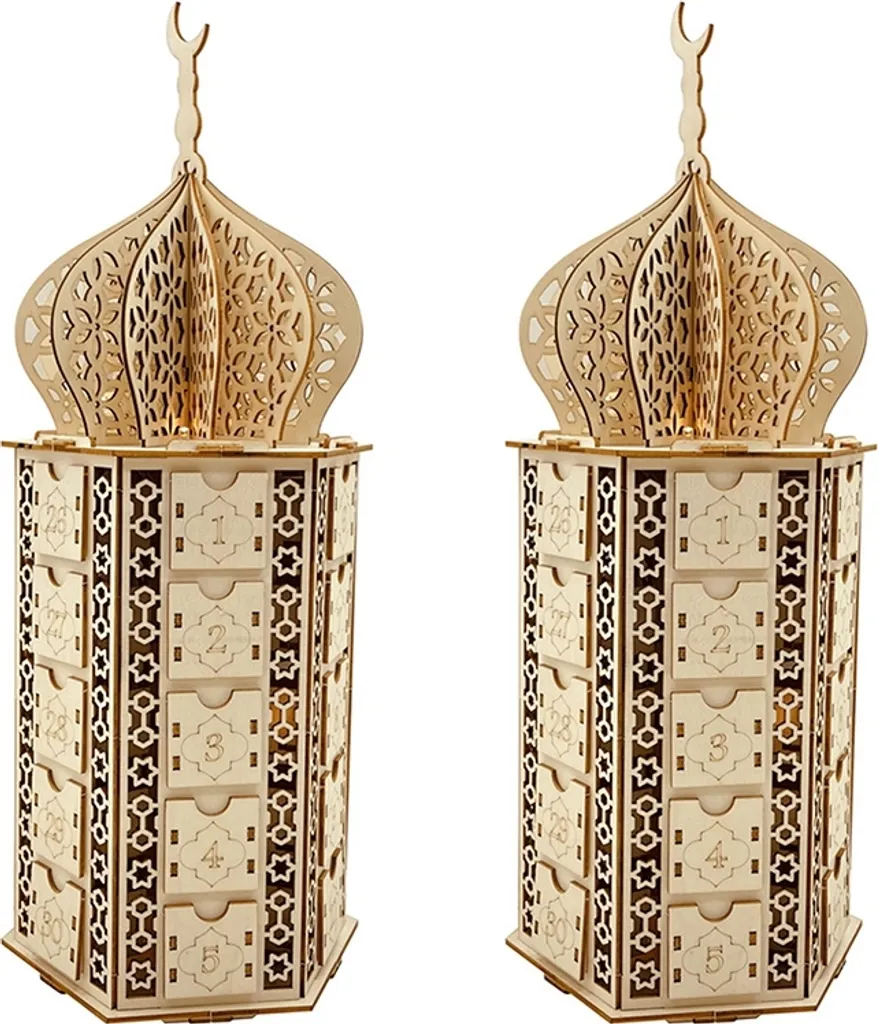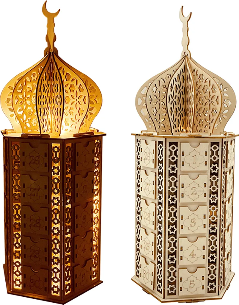 Einzigartige Form: Der hölzerne Ramanda-Adventskalender ist mit klassischen muslimischen Elementen gestaltet. Der Holzkalender ist wunderschön mit Moscheen-, Mond- und Sternenmotiven mit dreidimensionalem Effekt geschnitzt.