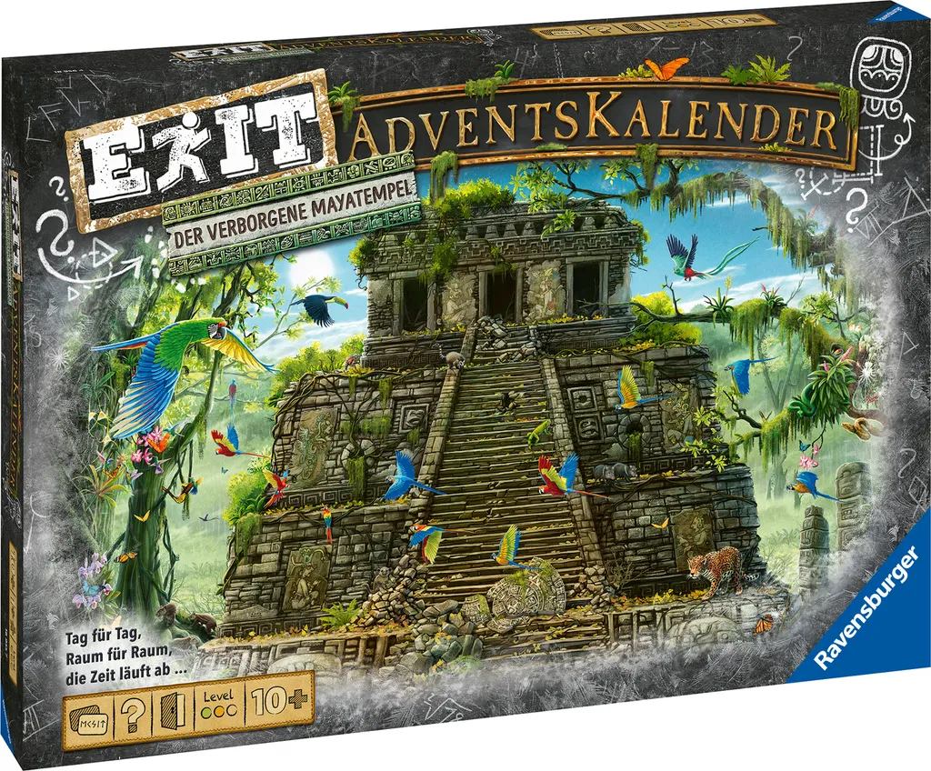 - Ein Adventskalender wie ein Escape Room: 47 Rätselkarten führen durch das spannende Abenteuer im Dschungel. Als Entdecker geht es nach Guatemala, auf der Suche nach einem geheimnisumwobenen Mayatempel