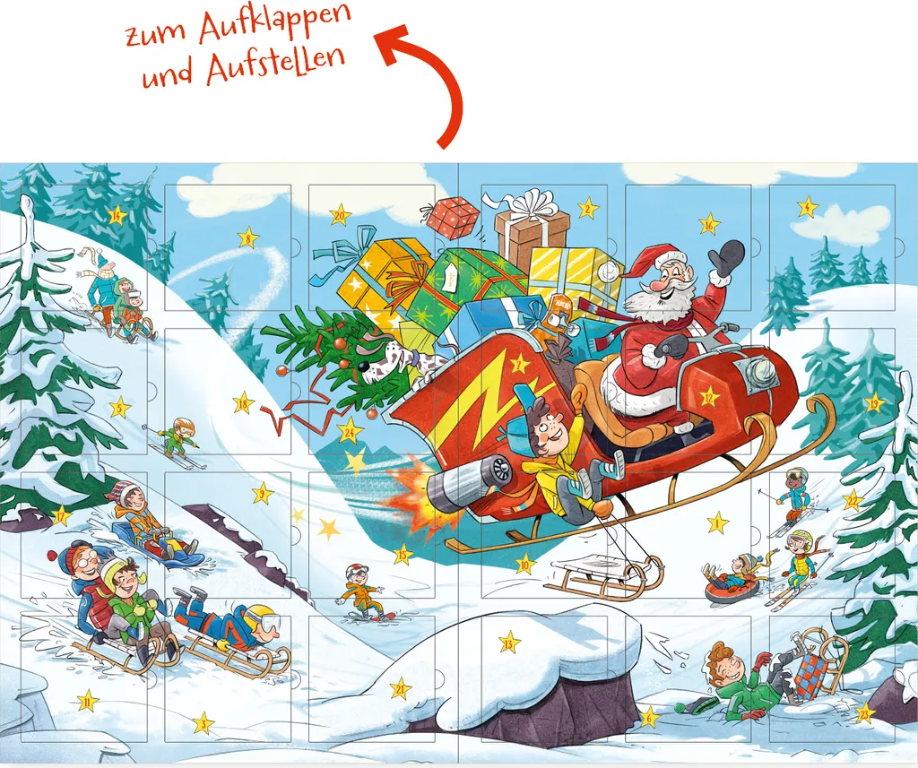 Durch sein praktisches Aufklapp-Format, lässt sich der Adventskalender ganz leicht überall aufstellen!
