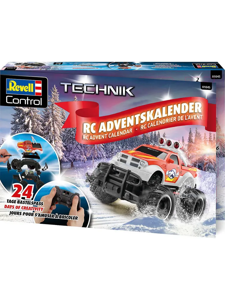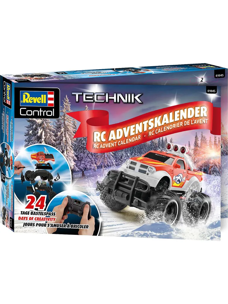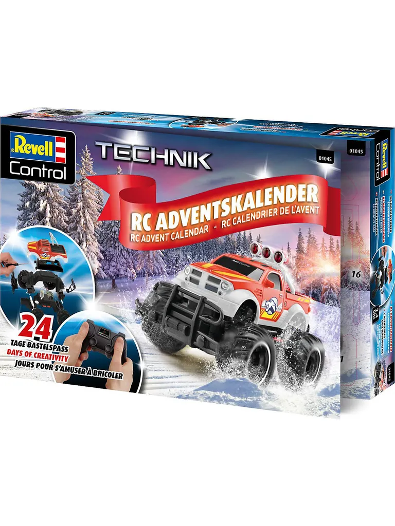 Perfekte Begleitung durch die Vorweihnachtszeit für alle RC und Modellbau Fans. In diesem coolen Revell Adventskalender steckt hinter 24 Türchen ein RC-Truck für alle Rennfahrer*innen ab 8 Jahren. Die beiden leistungsstarken Motoren und die supergroßen, gummierten reifen sorgen für tollen Spielespaß auf fast jedem Untergrund und Gelände. Für präzise Lenkmanöver ist die 2CH-GHz-Fernsteuerung bestens geeignet und liegt auch Anfänger*innen gut in der Hand. Der Adventskalender begeistert auch für erste Modellbauprojekte. Mit den 24 Teilen und der Anleitung sind auch Bau-Beginner*innen nicht überfordert und das fertige Ergebnis sorgt für mächtig Rennvergnügen! html