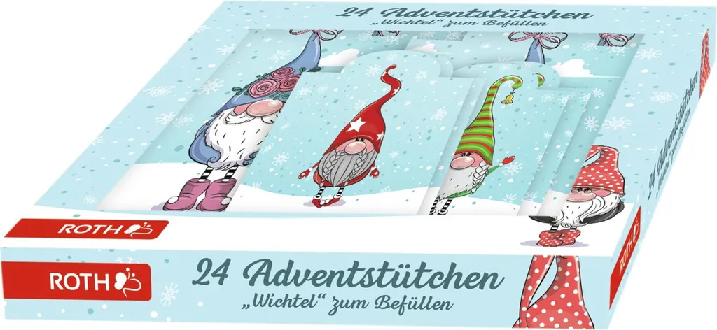 24 Adventstütchen ‚Wichtel‘ mit 24 Tütchen und Zahlenetiketten 1-24