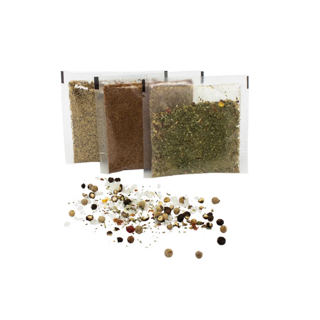 - GEWÜRZSPEZIALITÄTEN: Gewürztüten mit BBQ-Gewürzen, wie z. B.: Spießbraten-Gewürzzubereitung, Bratfischgewürzsalz, Knoblauchpfeffer, Garam masala, Zitronenpfeffer, Kräutersteak-Gewürze