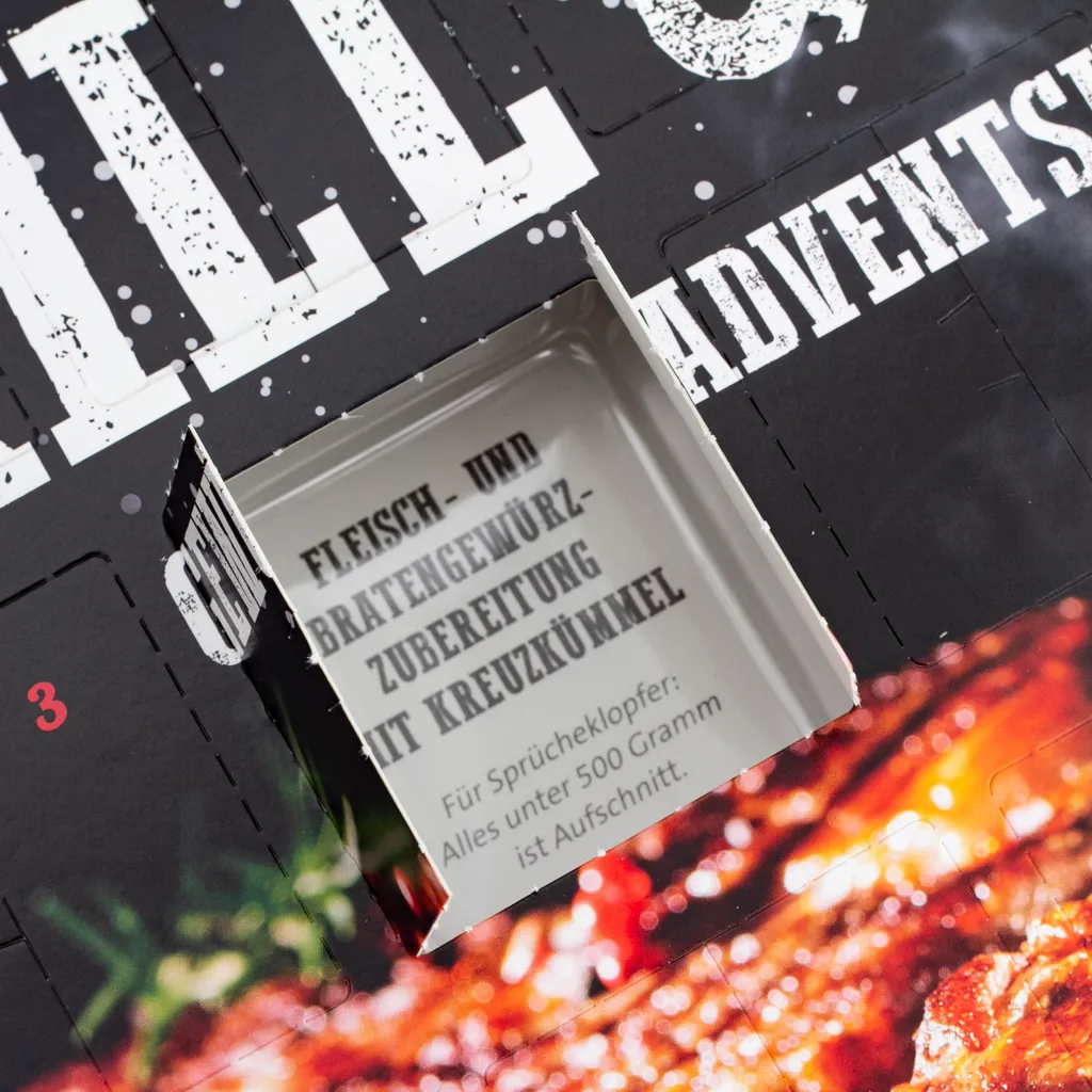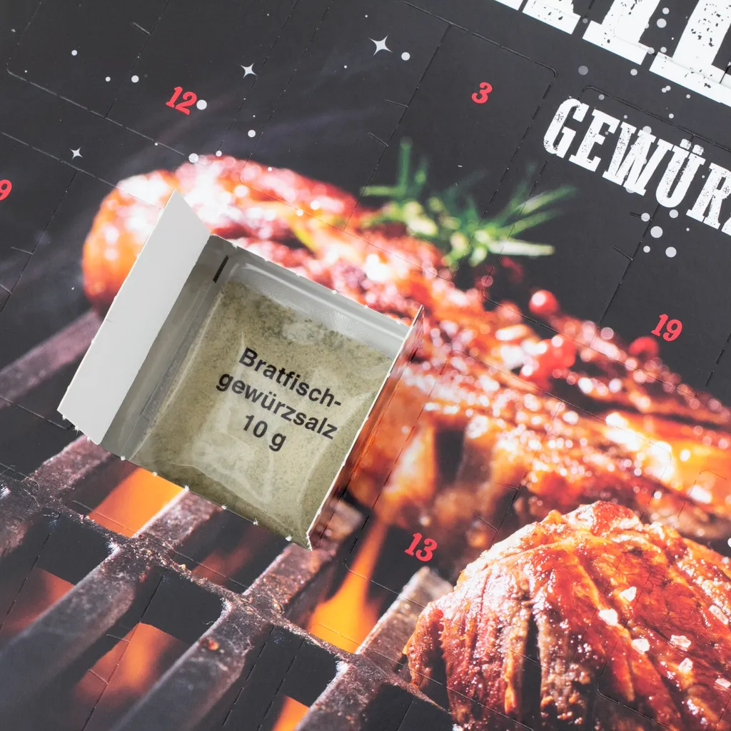 - AUSGEFALLEN: Der Türchenkalender enthält 24 verschiedene Kräutermischungen und Grill-Gewürze fürs Wintergrillen. Außerdem sind in dem Adventsset Sprüche und Ideen zu den Barbeque-Gewürzen enthalten