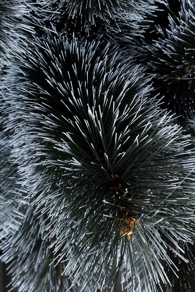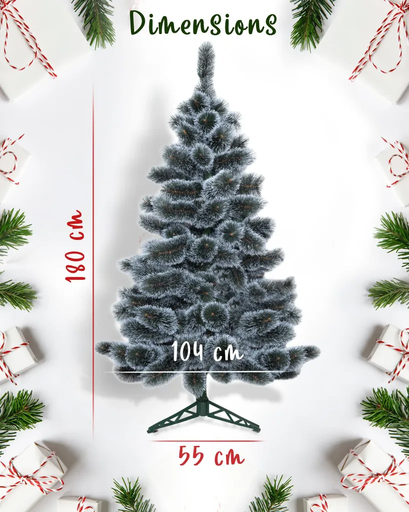 Der Baum ist aus hochwertigem italienischen PVC hergestellt. Die Zweige sind daher sehr flaumig, die Nadeln sind dünn und fühlen sich zart an. Außerdem sind die Spitzen der intensiv grünen Nadeln weiß überzogen, so dass der Weihnachtsbaum aussieht, als sei er leicht mit Schnee bestäubt worden.