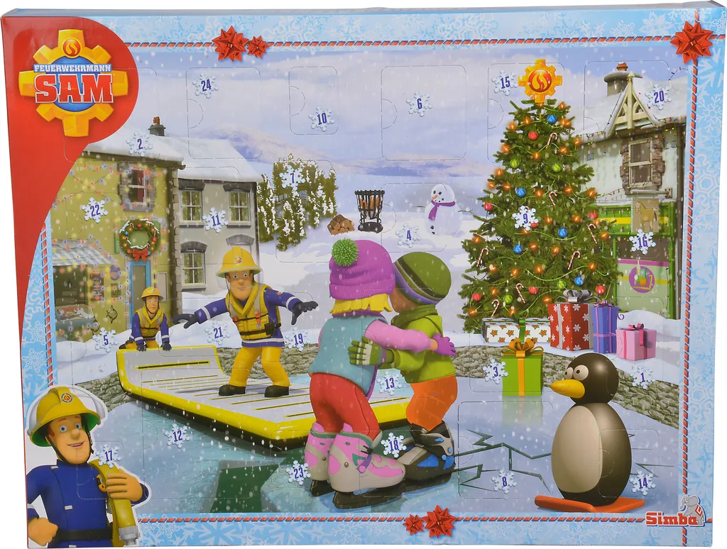 Bald ist es wieder soweit. Das Weihnachtsfest rückt immer näher und auch in Pontypandy kommt Adventsstimmung auf. Die Weihnachtsdekoration steht und die Dächer der Häuser sind bereits von einer großen Schneedecke bedeckt. Doch auch zu dieser Zeit müssen Feuerwehrmann Sam und sein Team immer wieder ausrücken und zu kleinen wie auch großen Notfällen eilen. Der Adventskalender beschreibt die Geschichte der Zwillinge James und Sarah, welche fahrlässig handeln und dadurch eine Kette von dramatischen Ereignissen auslösen. Neben diesen zwei Figuren ist auch Feuerwehrmann Sam im Kalender enthalten, der beiden zur Hilfe eilt und aufs Neue seinen Mut beweist. Was genau passiert und ob Feuerwehrmann Sam das Fest noch retten kann findet man hinter den 24 Türchen im Adventskalender, hinter welchen sich Tag für Tag eine kleine Weihnachtsgeschichte verbirgt, die von den Eltern vorgelesen werden kann. So erfährt man Stück für Stück das Geschehene und kann die Geschichte mit dem tollen Inhalt nachspielen. Im Feuerwehrmann Sam Adventskalender sind neben hochwertigem Spielzubehör auch 3 Figuren, ein Weihnachtsschlitten, ein Iglu und ein Marktstand enthalten. Der Feuerwehrmann Sam Adventskalender von Simba Toys ist für Kinder ab 3 Jahren geeignet.