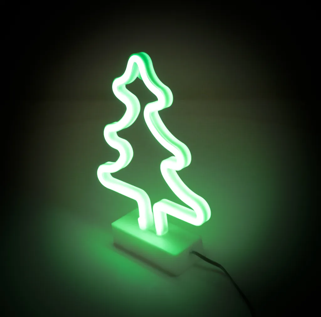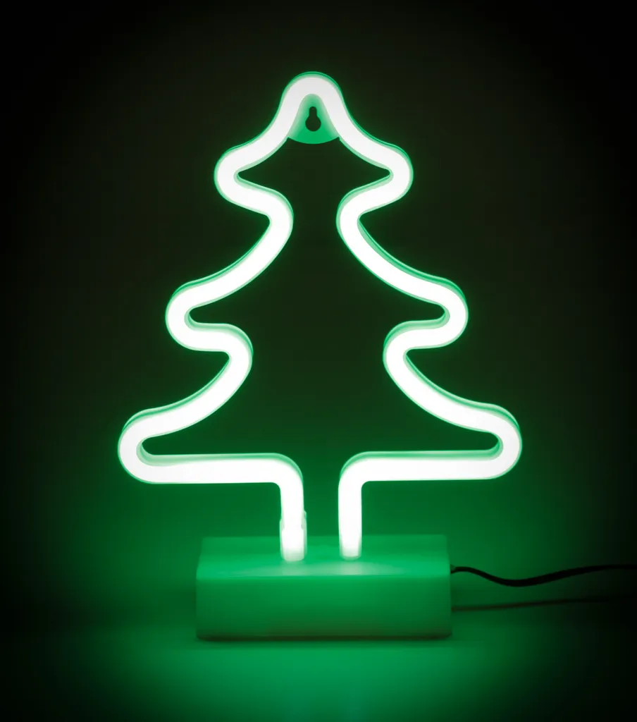 -1x Neon LED-Weihnachtsbaum in grün mit weißem Ständer