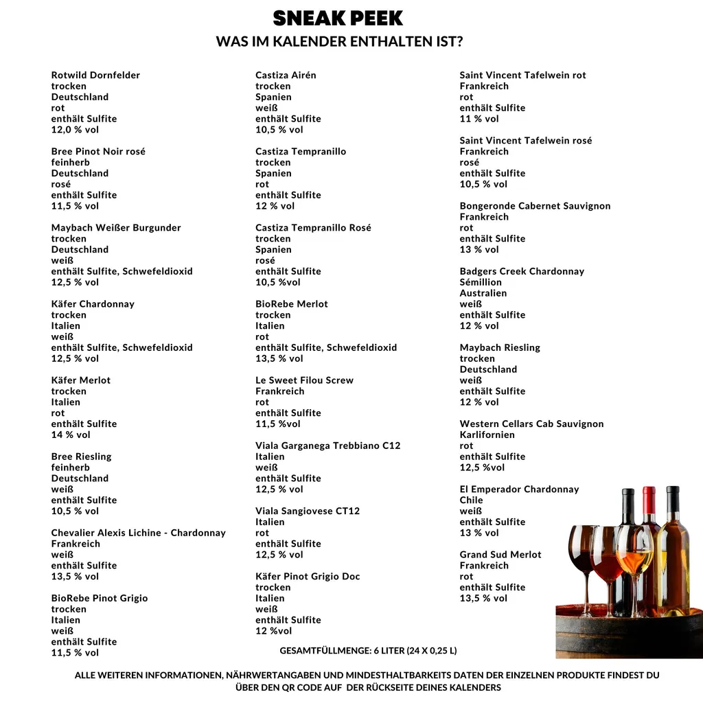 WEIN ADVENTSKALENDER mit 24 verschiedenen schmackhaften Weinen aus aller Welt.